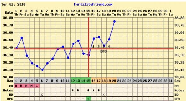 Jo seg kan den ju vara ibland. Har ofta 1-2 låga temperaturer efter Äl, men sedan brukar det stiga snabbt. Det brukar kunna se ut som på grafen nedan (från 2014) Men så segt som det är den här gången har jag nog aldrig varit med om.Guffy78 skrev 2016-09-19 08:36:37 följande:Min temp segar sig upp också! Idag är denbara på 36.53 mot igår 36.44 på ÄL dagen. Men jag vet säkert att ÄL varit för idag är det creamy och nästan inget.