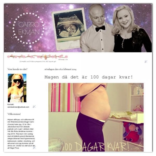Min finlandssvenska blogg! BF 28 maj ?? Mycket inredning, tips, vardag, magbilder m.m. Kika gärna in! Kommentera gärna er blogg där om ni också skriver preggo blogg :) Har idag lagt upp magbild då det är 100 daar kvar till bf, inspiration till babykläder. Http://carroekman.blogspot.fi
