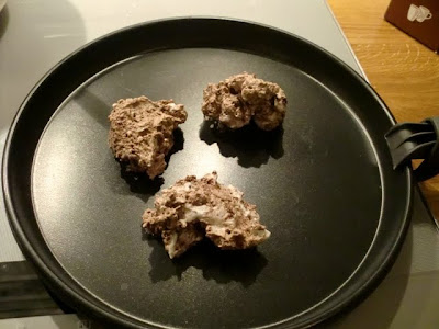 Det som kom ut var inte alls likt marränger. Det var likt gummi. Ungefär som marschmallows och det smakade lika dant. Som chokladmarshmallows. Klickarna gick att forma dessutom till marschmallows så då gjorde jag det och de var faktiskt jättegoda. Men jag föredrar vanlig chokladmousse.