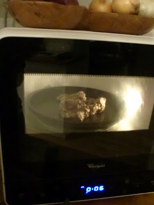 Här är pannan inne i mikron. Det roliga var att klickarna växte och blev jättestora! Sedan bara poff fes de ihop och då tog jag ut dem.