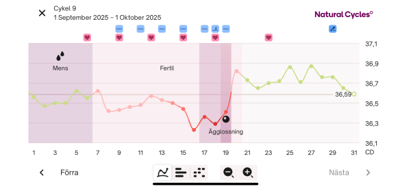 Andra testet den 1/10 (morgonen), NC sköt upp min sista dag i cykeln till denna dag efter mina temperaturmätningar: