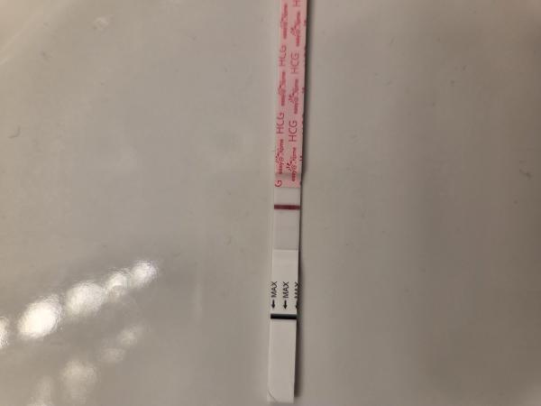 Jag testade senast för ca två veckor sen och då såg det ut som nu, men efter det har jag varit utan test. Fick hem nya idag och glad i hågen testade jag och räknade kallt med att det äntligen skulle vara negativt eftersom jag har haft ägglossning och det ändå gått så pass lång tid, men icke! Jag hade väldigt gärna velat att det skulle vara positivt men efter att ha googlat verkar det mest troligt att det fortfarande är MA't som spökar 😒 Ska dock fortsätta testa för att se åt vilket håll det går.