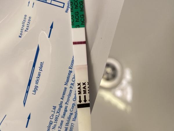 Tog en rfsu igår bara för att jag hade kvar en sticka hemma (plussade med CB i torsdags) och trots att det var morgonurin och två dagar senare fick jag ändå bara en svag svag skugga som just kunde ses med blotta ögat men som inte kunde synas på ett foto.
