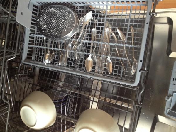 Jag diskar de flesta vanliga bestick nere, och kör andra grejer i mittkorgen. Funkar kanon!