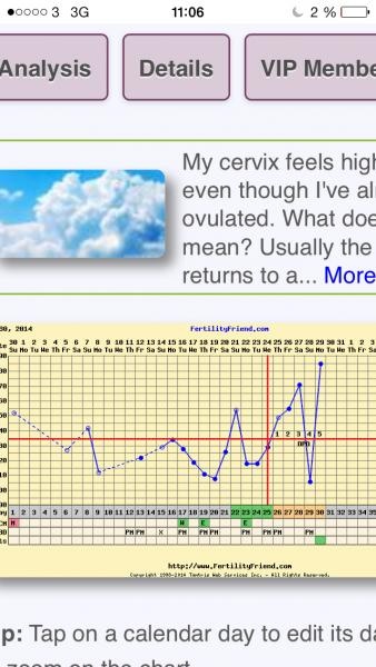Min temp tog skutt neråt idag. Ser att mensen är på väg genom tempen smile4.gif Blev inget för mig denna månad heller med andra ord, nu är det bara att vänta på mensen.
