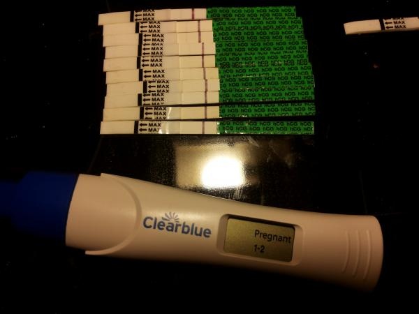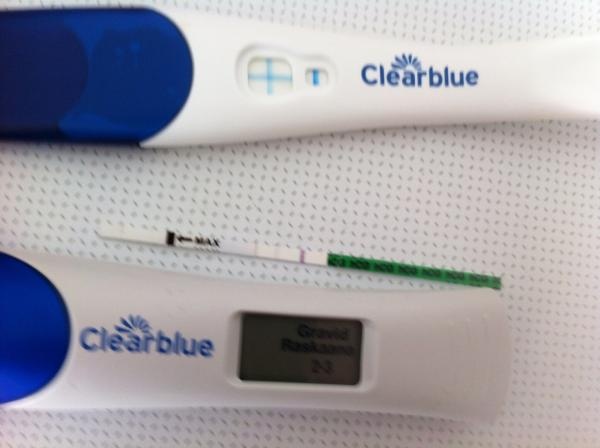 Började testa 6 dagar innan vad jag trodde skulle bli BIM neg sedan 4 dagar innan Bim neg då gav jag upp hoppet och började tro att vi skulle få invänta nästa månad. En dag innan BIM nytt test först såg det negativt ut, efter en kvart tjugo minuter då började det framträda ett streck?! Spökstreck tänkte jag. Test nästa morgon, även nu ett mycket svagt streck som visade sig allt tydligare efter att de fem minuterna hade gått. Testa eftermiddag, lite snabbare och starkare resultat. Test BIM+1 klockade 5minuter resultatet kan inte betyda annat än GRAVID! Tjohooo från en numera testnarkoman?!?!