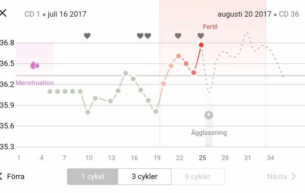 Jag blir tokig på NC! Hittills har den visat att jag ska ha ÄL idag (dag 26), men idag när jag fört in tempen kommer ett meddelande att logaritmen uträknat att jag hade ÄL dag 21. Men jag fick en blinkande glad gubbe på Clearblues teststicka. Känns som Clearblue är mer att lita på, eller hur?