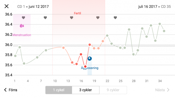 Jag har tagit tempen i ca. en månad nu, hoppas såklart att det tog sig direkt men antagligen är det önsketänkande, haha. Dock så ändrades ägglossningen i appen efter hand och sköts fram nån dag, men det är väl så i början.