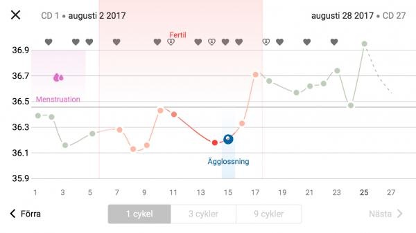 Jag har tagit tempen i ca. en månad nu, hoppas såklart att det tog sig direkt men antagligen är det önsketänkande, haha. Dock så ändrades ägglossningen i appen efter hand och sköts fram nån dag, men det är väl så i början.