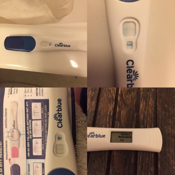 Vaknade 5:15, hoppade upp och kissade i kopp. Första digitala funkade inte men andra gav detta utslag. Jag vill berätta för världen men inte ens min man vet än. Lämnade Stickan i badrummet, får se om han lägger märke till den när han vaknar.