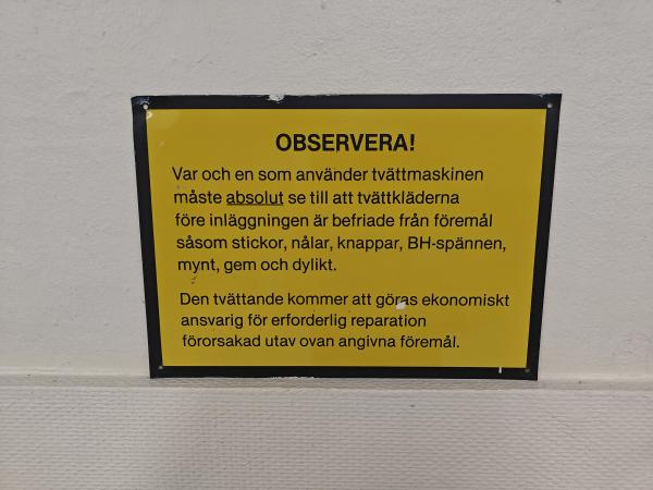 Det är nog dags att byta ut skylten i tvättstugan 😀
