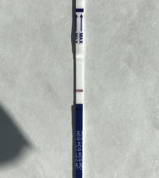 Detta test är taget idag, äl+9 på eftermiddagsurin efter att hållit mig i två timmar. Tyckte först det såg helt blankt ut men ju mer jag stirrar desto mer inbillar jag mig ett svagt streck. Vore jättesnällt om några andra ögon vill hjälpa mig bedöma :)