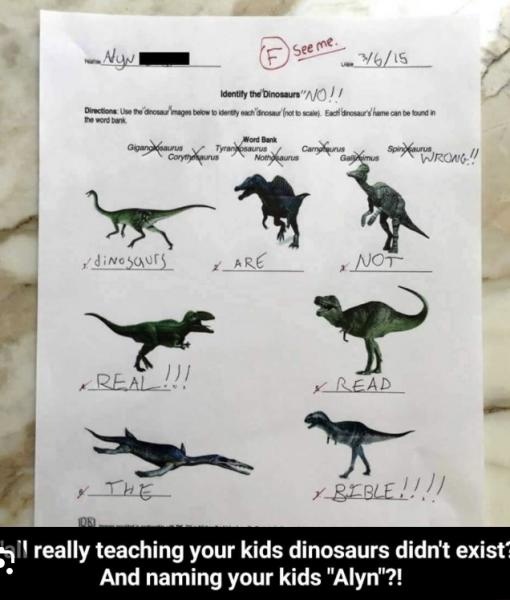 Det finns ju hela skelett av t-Rex till exempel. Så människans evolution är bara påhitt, och jordens ålder också då?