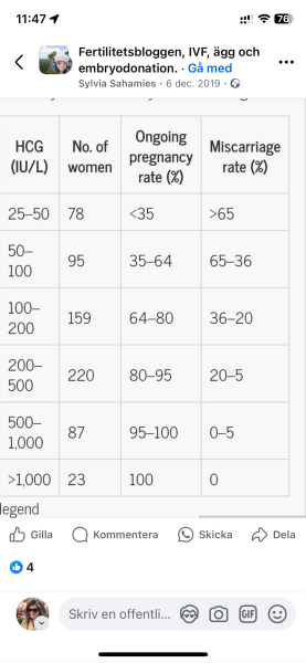 här är en hcg-tabell med missfallsrisk när prov är taget dag 16, dvs motsvarande RD dag 11 med femdagars blasto.