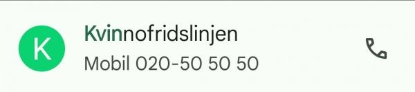 Kvinnofridslinjen 020-505050 Lägg in i mobilen vid förälskelse, ring vid första slaget