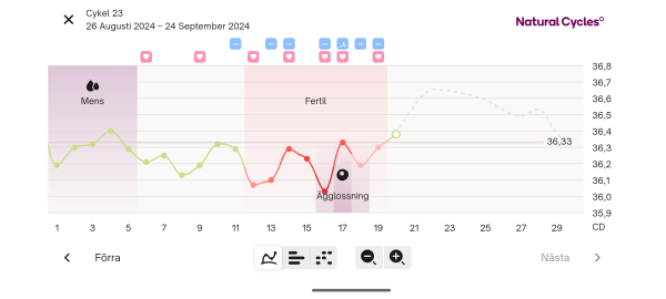 Så nu hoppas jag på plus i september, har oregelbunden cykel så har lagt in datumet som NC satt ut tillfälligt.