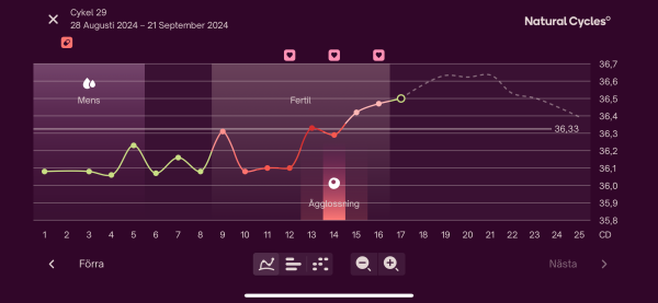 Hej hej!! Hoppar in här då mensen är på ingång och inga positiva g-test.. har anslutit min Oura ring nu idag till NC så målet kommande månad blir att få en lite tydligare bild av min cykel. Hade varit skönt att få se om NC kan bekräfta ÄL. Har inte fått bekräftat sen min senaste graviditet 2021 då jag inte orkat/lyckats tempa med termometer eller ta äl-test på rätt dag..