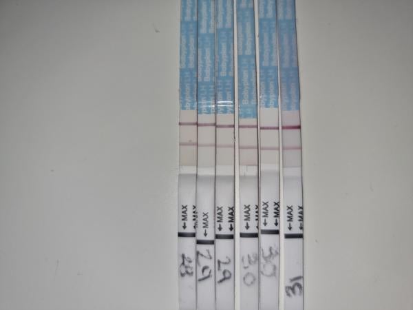 Hmm, jag vet inte riktigt hur jag ska tolka detta resultat. Köpte ett paket med 25 stickor i, så får använda upp dem ändå haha. Jag får gå efter mina flytningar och sexa på som vanligt. Just nu har dem ökat på markant sedan igår. Rimligast är att jag har ägglossning någon gång mellan den 2-6 sep. Får se om dem gör utslag på det. Men ska inte köpa dem fler gånger om dem inte är så trovärdiga. -