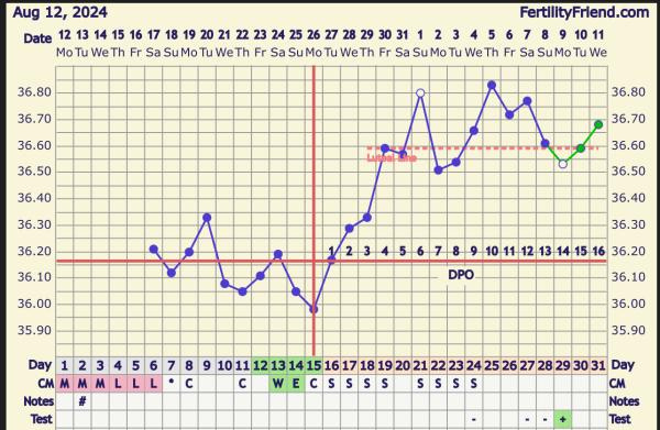 Är helt klart orolig att mensen kommer snart.. ser inget jätte stegring på fyra dagar och brösten är inte lika ömma idag, främst le nipples som är känsliga. Det enda jag ser som ?bra tecken? är att min vilopuls hoppat upp ännu en snäpp inatt, samt tempen är uppe 36,6 fortfarande, vilket inte så högt som den var uppe på förra veckan men jag var också liiite sjuk förra veckan.