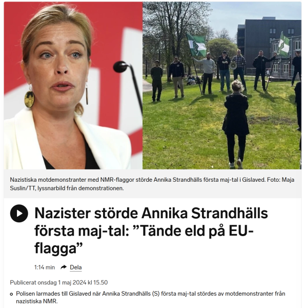 Så jag frågar igen: Varför pratar du inte om de svenskar i NMR som stör tillståndsgivna demonstrationer? Tycker du inte att det är fullständigt oacceptabelt när svenska högerextrema grupper underminerar demokratin på det här sättet?