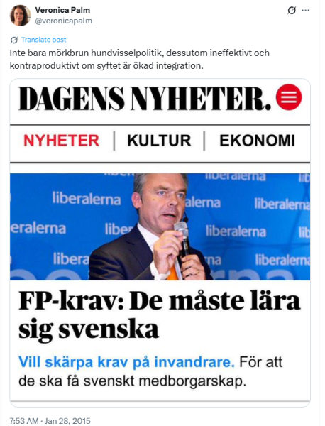 M för att de varit för långsamma med att införa språkkrav för medborgarskap!