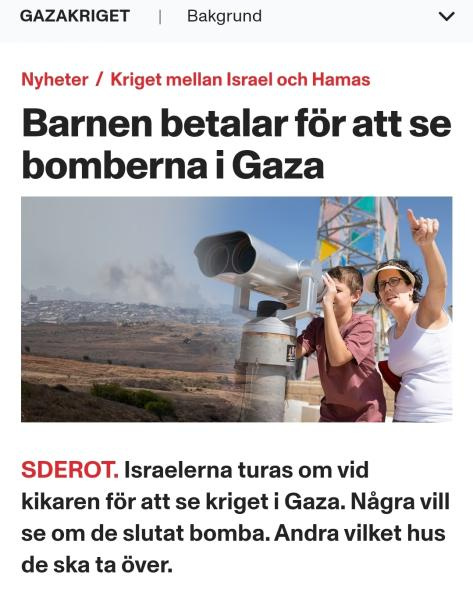 Det som sker just nu i Gaza är outhärdligt. Oskyldiga barn, kvinnor och män dödas och tvingas svälta av Israel. Bilderna vi ser Gaza är fyllda av förtvivlan och sorg, och ändå tycks världens poliyiker stå passiva. Människovärdet borde vara universellt, oavsett nationalitet eller religion. En människa är en människa trots israels ständiga försök att demonisera palestinier.När bomber faller över bostadsområden, när hela familjer utplånas, när människor mördas medan de försöker skaffa mat, när barn skjuts systematiskt kan vi inte blunda. Varför accepteras det av högerpolitiker som tiger och låter brutaliteten fortsätta?