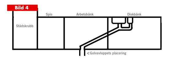 Men diskbänken installerades MELLAN spisen och arbetsbänken. Tvärt emot vad svensk byggstandard, Boverket och bonnförnuft säger. Jag måste nu hoppa fram och tillbaka mellan spisen med stekpannan och bänken med skärbrädan och falukorven.