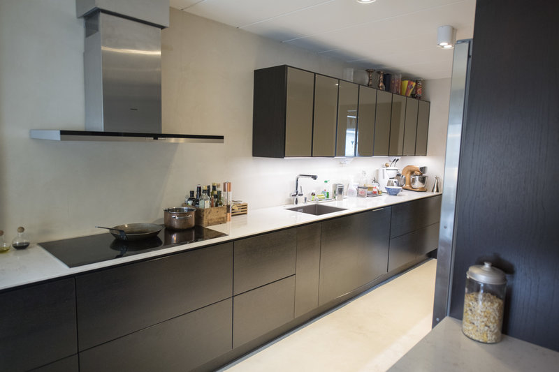 För daglig rengöring av köksskååoen, dammsug först bort löst damm med ett borstmunstycke. Torka sedan av med en lätt fuktad mikrofiberduk eller svamp. Men var noga med att trasan bara är precis fuktig, inte blöt. Marshall varnar för att använda för mycket vatten, en liten mängd räcker långt. Sedan är det viktigt att alltid torka torrt direkt efteråt med en ren trasa för att undvika fuktskador i trät. Arbeta sedan i sektioner, uppifrån och ner när du rengör skåpen.