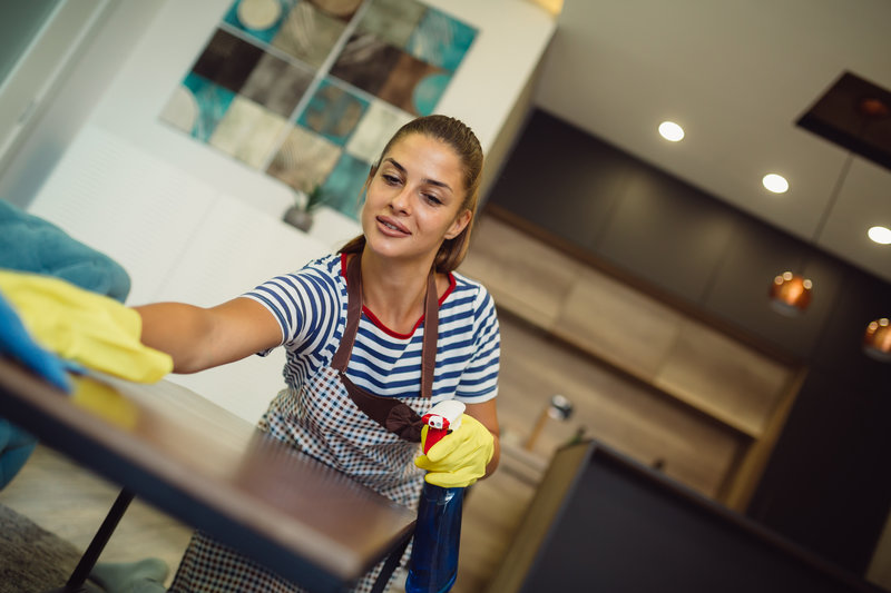 Lägg en halv minut på att torka av köksbordet eller soffbordet efter måltider. Om du städar konsekvent behöver man inte alltid använda starka rengöringsmedel, utan en fuktig trasa räcker ofta.