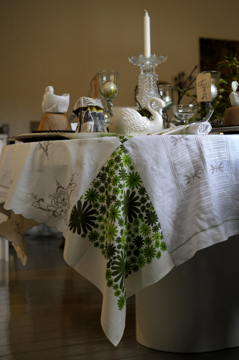 Om du har dukar som du tror hade skapat ett fint mönster tillsammans går det också att kombinera dem genom att klippa ut kvadratiska former av dukarna som du sedan syr ihop med varandra. Den färdiga produkten funkar bra både på en kudde eller som duk.