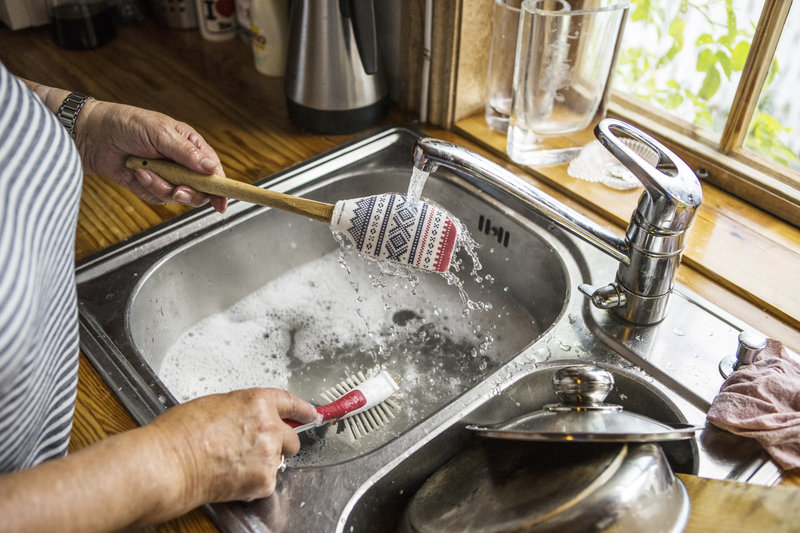 Även om du har kvarn eller sil i vasken, utgå från att matrester ska skrapas ner i matavfall eller kompost och att avloppet ska belastas så lite som möjligt.